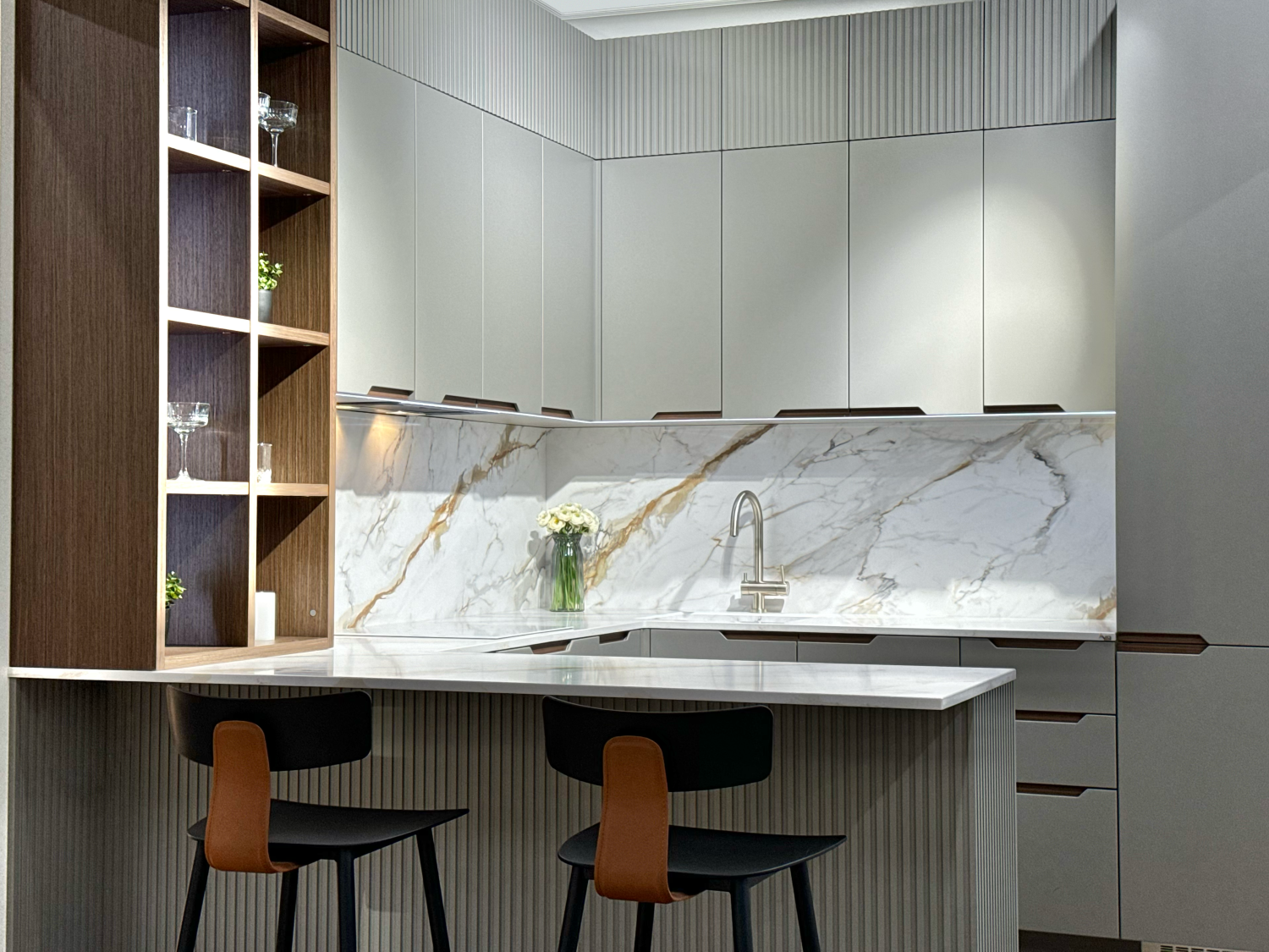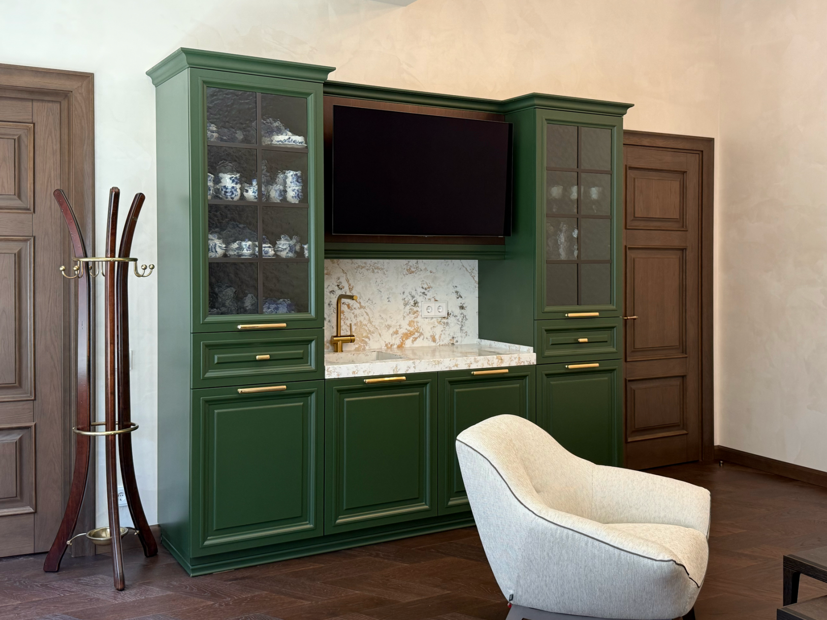 В итоге заказчик получает уникальный гарнитур, который сочетает эстетику, функциональность и удобство эксплуатации.