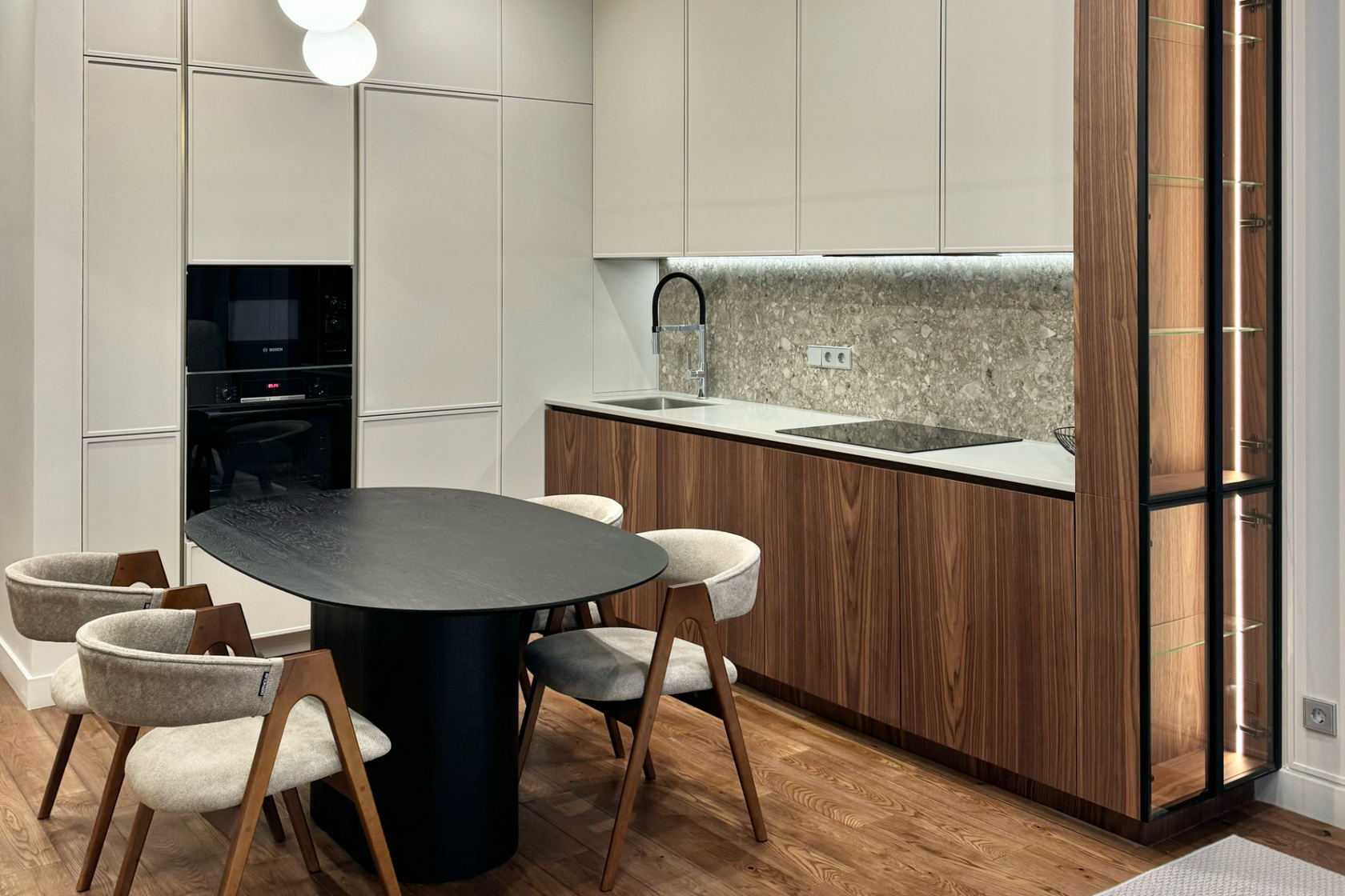 Независимо от выбранной стилистики, на первом месте при создании мебели всегда стоят нормы эргономики. Грамотно спроектированная кухня должна быть удобной в использовании и привлекательной визуально. Оптимальное распределение элементов гарнитура в пространстве помещения позволит легко перемещаться между рабочими зонами, а современные технологии гарантируют комфорт приготовления пищи, хранения различных аксессуаров.