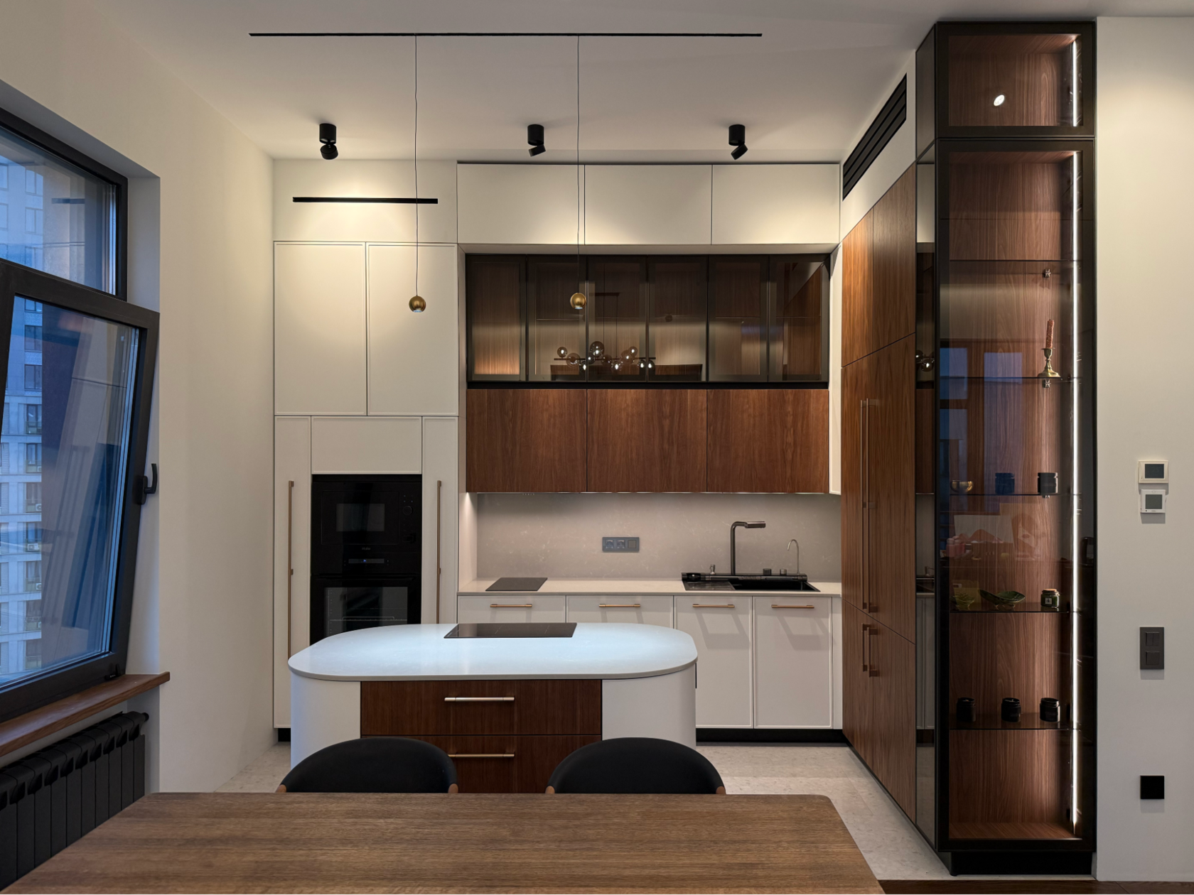 После внедрения таких решений мебель становится центральным элементом интерьера, а не просто функциональным набором шкафов. Свет подчеркивает фактуру материалов, глубину цвета и форму модулей. Кухня при этом выглядит цельной дизайнерской композицией, где каждый элемент — от фасада до подсветки — работает на общий стиль. Пространство становится уютным и современным одновременно.Стильная кухня в квартире — это результат продуманного дизайна мебели, грамотного зонирования, внимательного выбора материалов и света. Кухонные гарнитуры на заказ не только радуют глаз, но и делает повседневные дела проще и приятнее. Индивидуальный проект позволит учесть все потребности семьи и особенности помещения. Если хотите получить гармоничное и функциональное пространство, то время задуматься о заказе дизайнерских кухонь и создании интерьера, который будет вдохновлять каждый день.